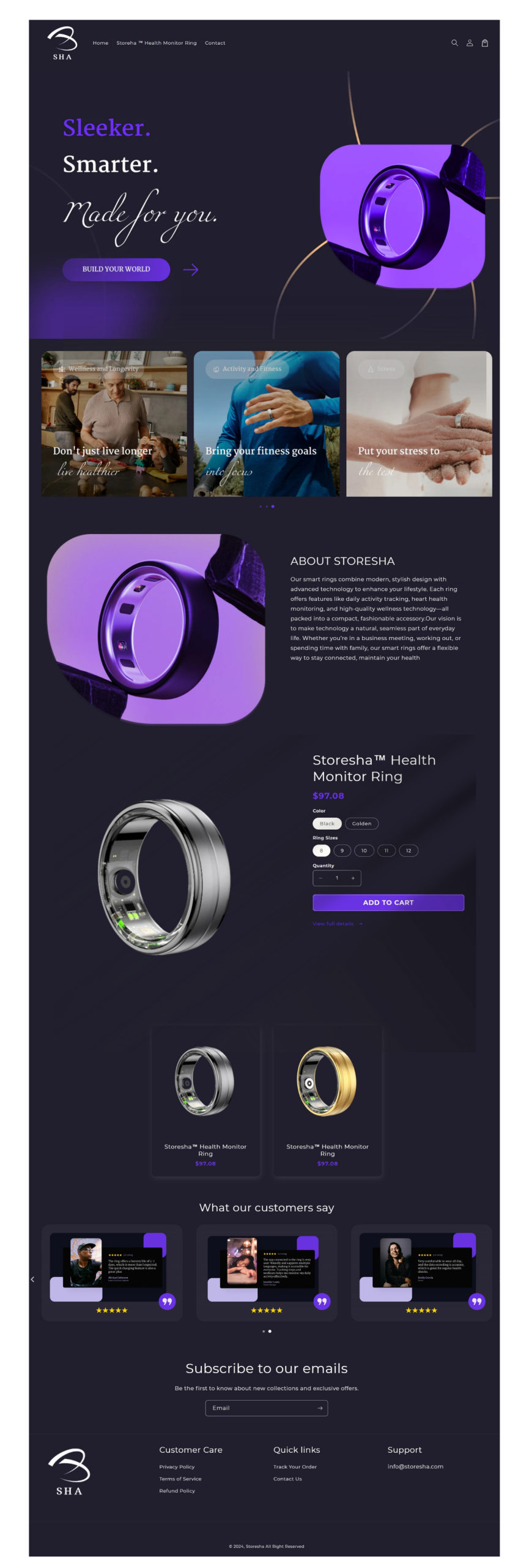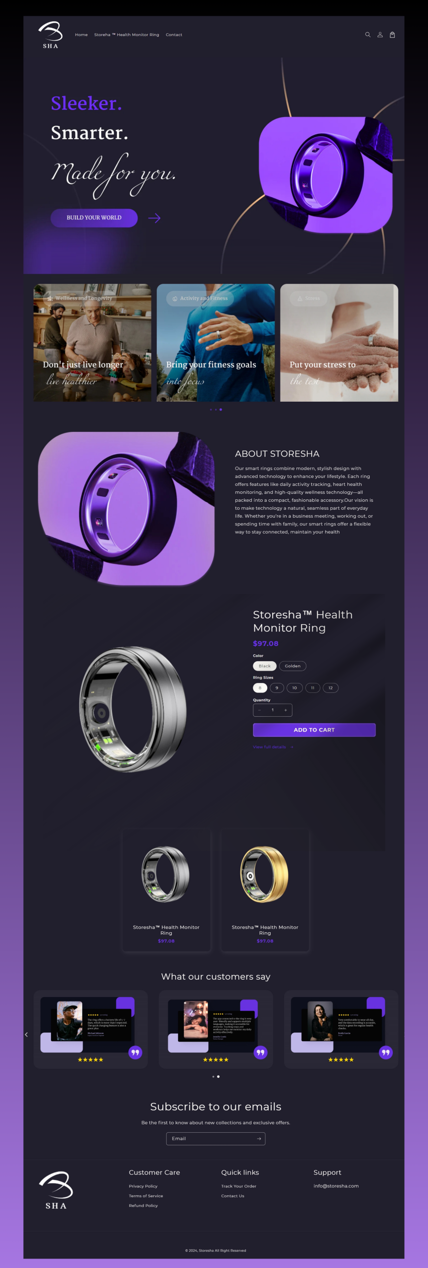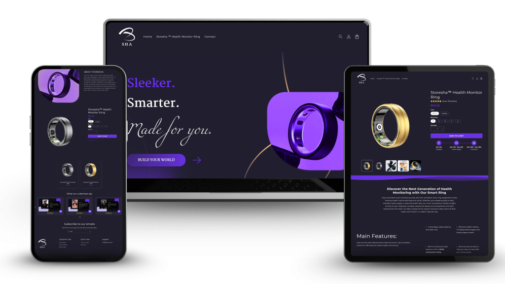 I created a sleek, one-product dropshipping store for a smart ring targeting tech-savvy users. The main goal was to build a high-converting, fast-loading Shopify store optimized for mobile users.